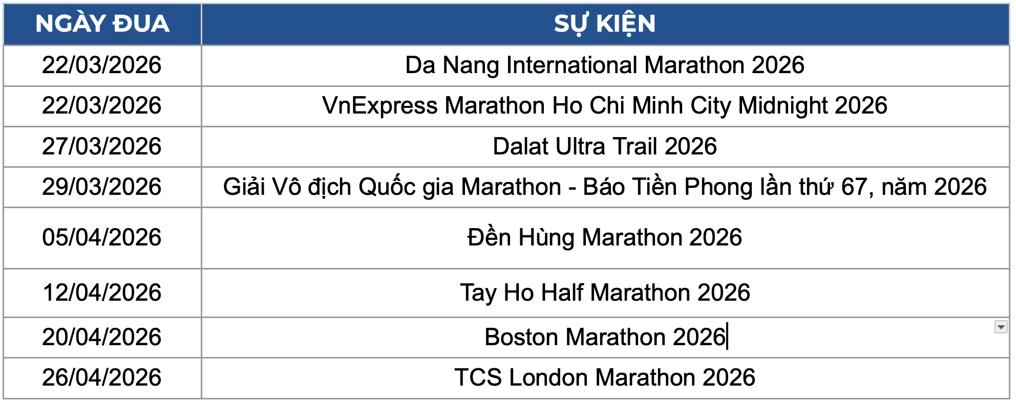 Mở đầu bản tin tháng này, chúng tôi xin giới thiệu đến bạn một số cuộc đua nổi bật trong tháng 3 và tháng 4/2026. Đây là những sự kiện đáng chú ý, mang đến nhiều cơ hội để bạn thử thách bản thân, trải nghiệm những cung đường mới và kết nối với cộng đồng vận động viên.